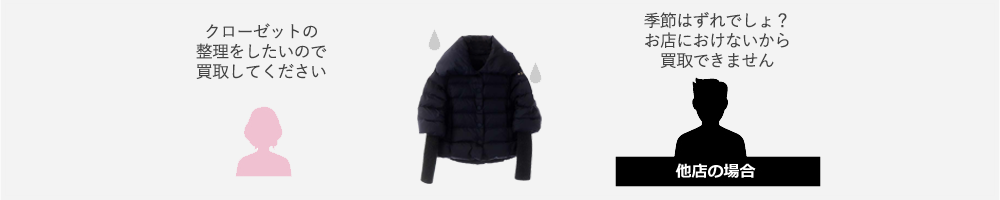 クローゼットの整理をしたいのに、 「オフシーズン物は在庫として持ちたくないから」というお店の都合で買取できなかったり、買取金額が安くなることに納得できますか?