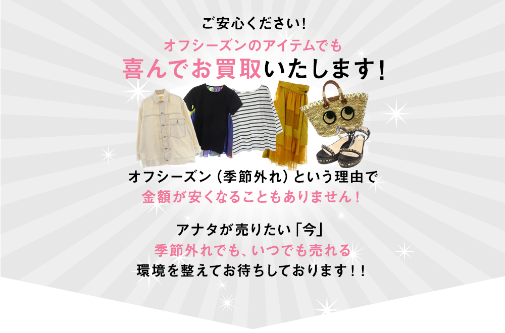 当店は季節外れだったとしても春夏物を1点1点を丁寧にお見積りいたします。