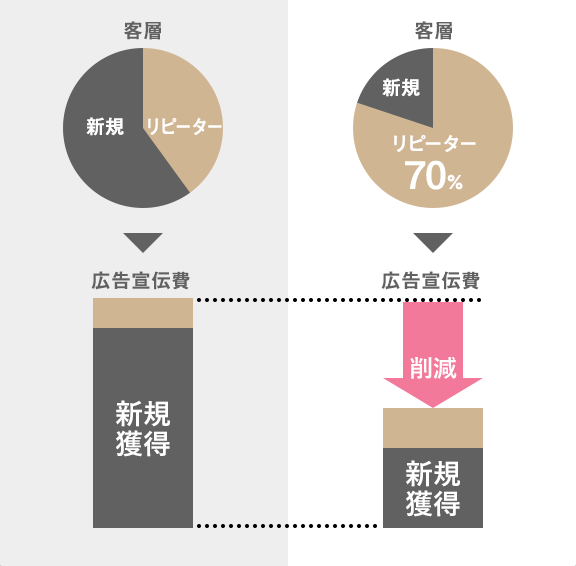 宅配での買取はお互いの顔が見えなくて不安に思うもの。 当店では査定担当者の顔が見える、お客様に寄り添った接客でご安心頂けるよう努めております。 その結果、リピートのお客様が7割を占めているため、新規獲得の為の広告予算削減を実現、 広告宣伝費の削減につながり、その分を買取価格へ還元しています。